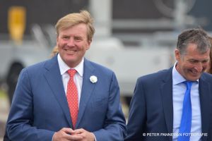 Koning Willem-Alexander werd welkom geheten door burgemeester Sipke Swierstra van Veendam, Commissaris van de Koning van Groningen René Paas en Jaap Wolters, kamerheer van de Koning.