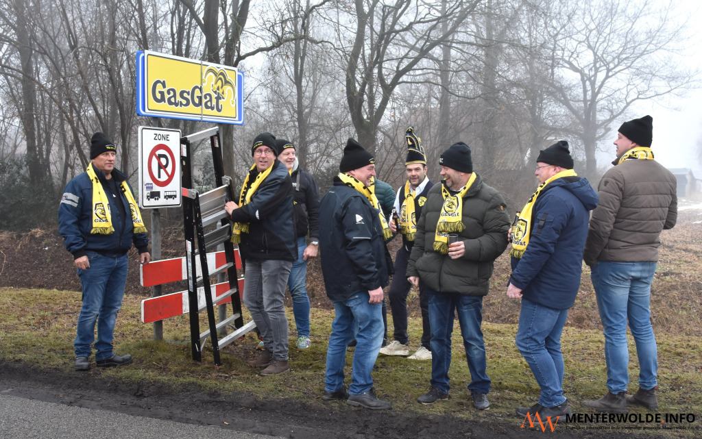 Het is weer zover, Ommelanderwijk en Zuidwending zijn omgedoopt in Gasgat. Dat gebeurde vanmiddag door carnavalsvereniging Elk en Ain uut Gasgat. En onder leiding van Prins Bas, adjudant Remmelt en de Raad van Elf. Dat gebeurde met muziek, veel confetti en het nodige gerstenat. Onderweg werd werden de mannen getrakteerd op een door een bewoner aangeboden versnapering.