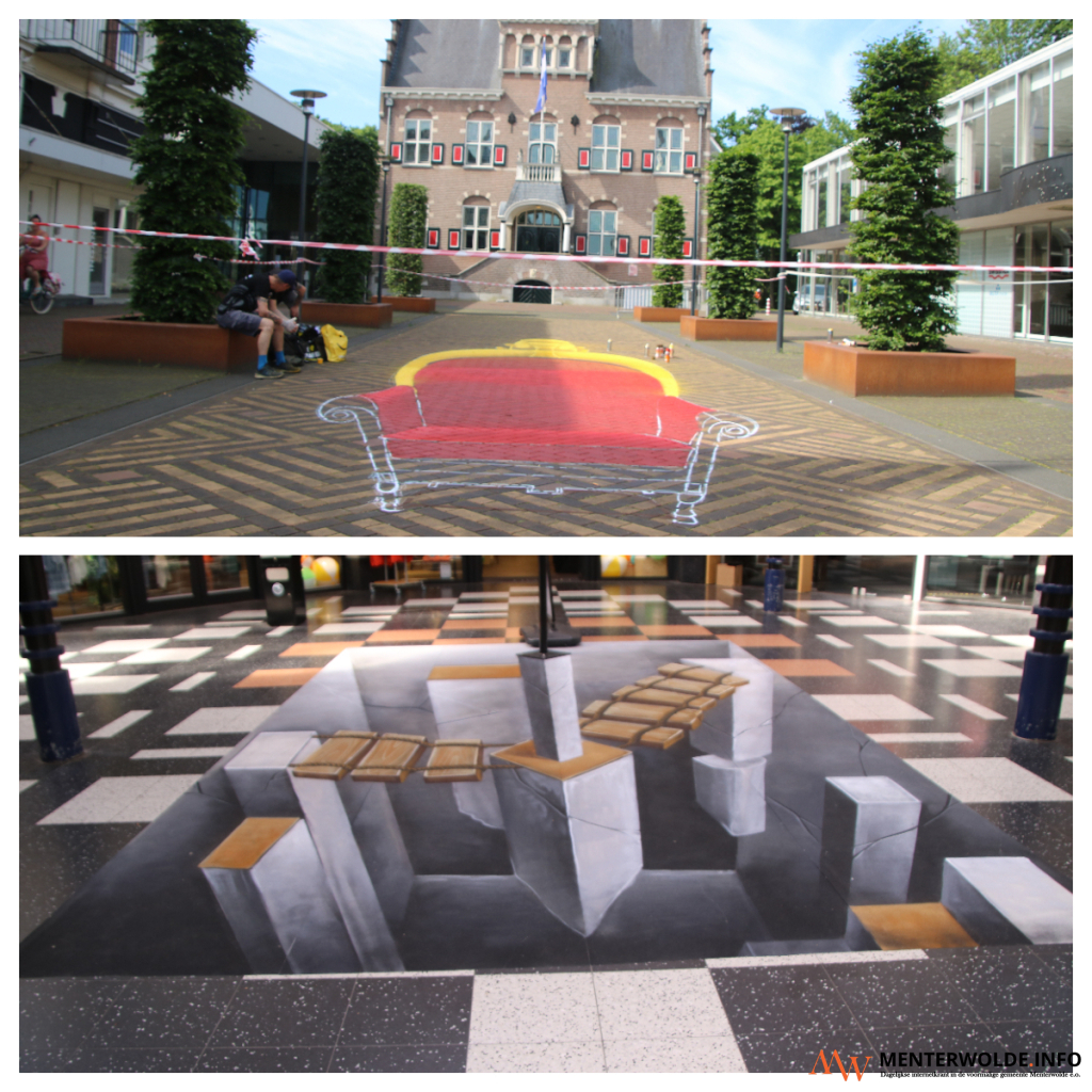 Wees gerust, de kunstwerken zijn de komende 3 maanden - het weer speelt geen rol - te zien in het centrum van Veendam. "Tenzij de gemeente er met haar borstelwagen overeen rijdt. Of wanneer je er fors remt met je auto", vertelt een van de kunstenaars.