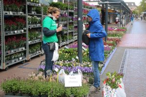 Perkplantjes, struiken, vetplanten, bloembollen, tuingereedschappen en veel meer moois voor de tuin is vandaag te vinden in het centrum van Veendam. Daar is sinds vanochtend 9 uur en tot vanmiddag 5 uur de jaarlijkse bloemen- en tuinmarkt. Het verschil met vorig jaar? Het weer. Vorig jaar scheen de zon volop, nu laat die zich amper zien. Wat onveranderd blijft, zijn de tuinliefhebbers die volop inkopen doen.