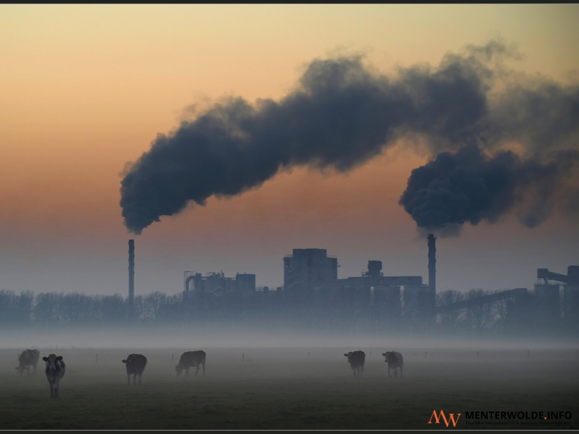 De tweede foto heeft Willem Slagter gemaakt bij zonsondergang vanaf de Noorderweg naar het A.G. Wildervanckkanaal richting Nedmag in Veendam. "Het geeft het samenspel tussen het mooie Groninger landschap met koeien in de wei en de oprukkende en soms overheersende industrie aan", legt de fotograaf zijn tweede fotokeuze uit.