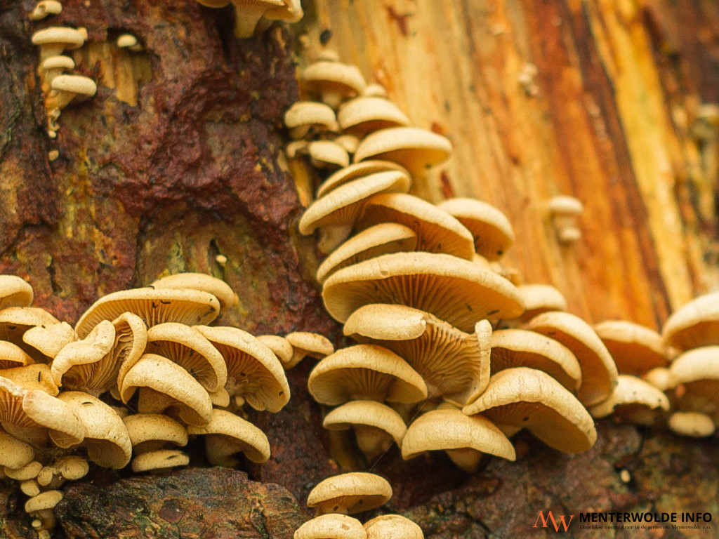 Maarten licht zijn tweede foto ook toe: "Dit is een een close-up van paddenstoelen op een dode boomstam. Deze paddenstoelen variëren in grootte van een paar millimeter tot anderhalve centimeter. Ook zijn op de foto veel details te zien van de boomstam."