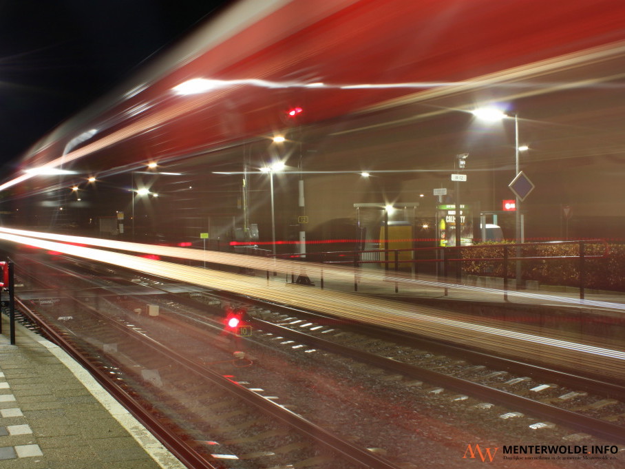 Bijlholt: "De tweede foto is een geheel andere foto en betreft nachtfotografie, waarbij je kunt werken met langere sluitertijden. Bij deze foto heb ik een sluitertijd van 25 seconden gebruikt en zo een rijdende trein in beeld gebracht. De trein lijkt hierdoor als het ware transparant. De foto is gemaakt op het station in Zuidbroek."