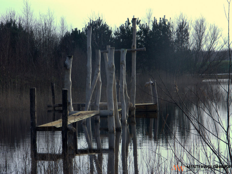 De Muntendammer vertelt over de ingezonden foto´s. "Dit is het 'nieuwe' gedeelte van de Heemtuin wat nog bezig is ingericht te worden met allerlei houten voorwerpen in en om het water. De derde foto geeft een totaalbeeld van de plas en de hierboven geplaatste foto is een close up wat ik bedoelde met de houten voorwerpen. Net zoals de andere foto. Dat stelt een houten pad voor dat plotseling in het water stopt."