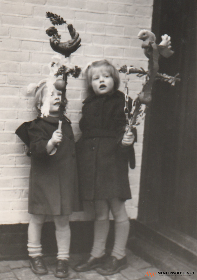 Foto onder: Mariette Elzenga met haar zusje tijdens Palmpasen.