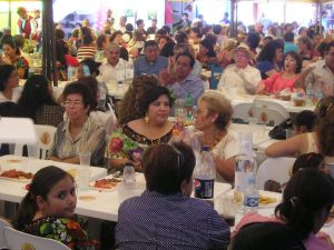 Frisdrank en bier en veel hapjes worden op de tafels gezet. Het is duidelijk dat het tijd is voor feest! "Kom hier maar zitten." Een aantal vrouwen van middelbare leeftijd nodigt me uit plaats te nemen aan zijn tafel. "Biertje?" In eerste instantie bedank ik hartelijk. Het is amper 12 uur en de eerste flessen Sol (gelukkig maar 190 cl.) staan op tafel. Bij de volgende ronde vraagt een 60+-er mij beleefd of ik nu wel meedrink. "Alsjeblieft," zeg ik en neem een flink slok bier.