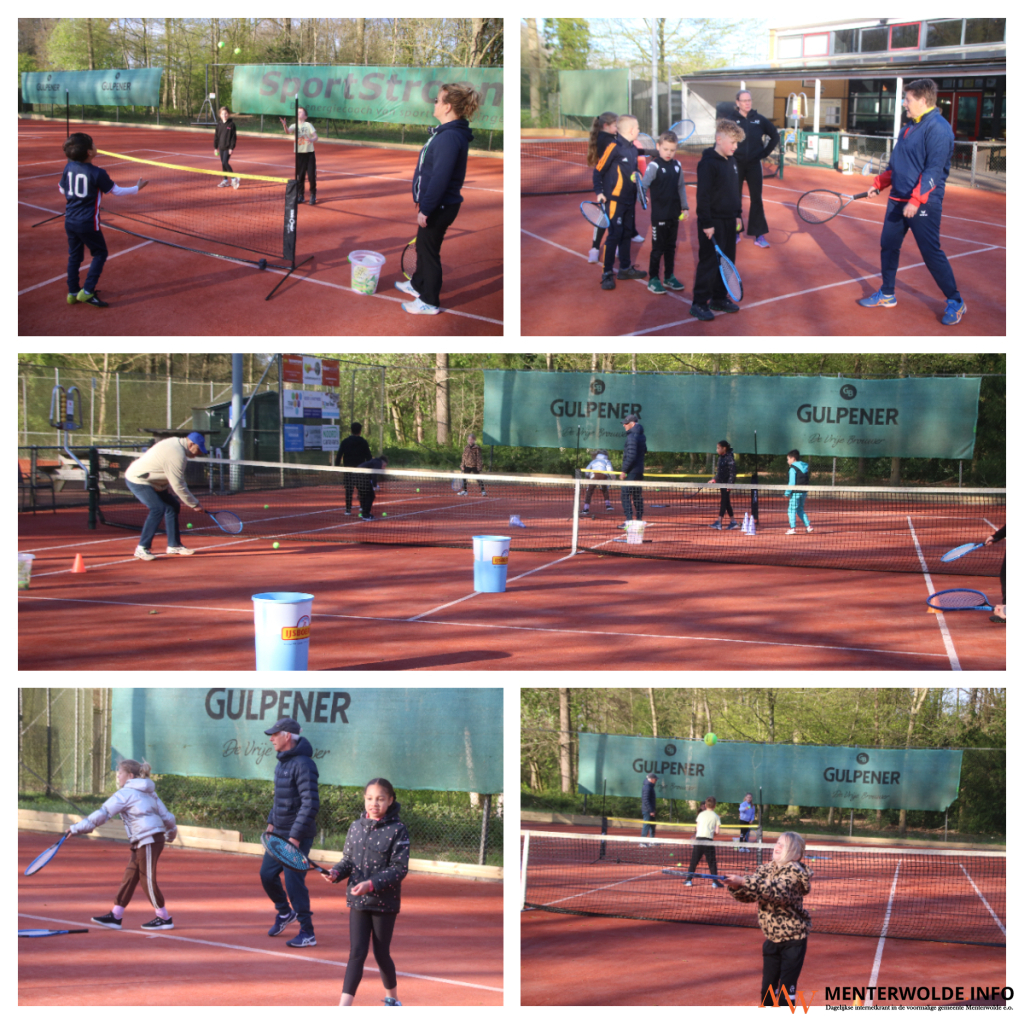 175 leerlingen van de bovenbouw van de christelijke basisschool De Parel en openbare basisschool Menterhorn uit Muntendam maken deze week kennis met tennis. Dat gebeurt bij Tennisclub Muntendam (TCM). De kinderen nemen deel aan 4 onderdelen - balgevoel, introduceren van het racket en slaan - en sluiten af met het eindspel. Hier moet de bal in een vak worden geslagen.