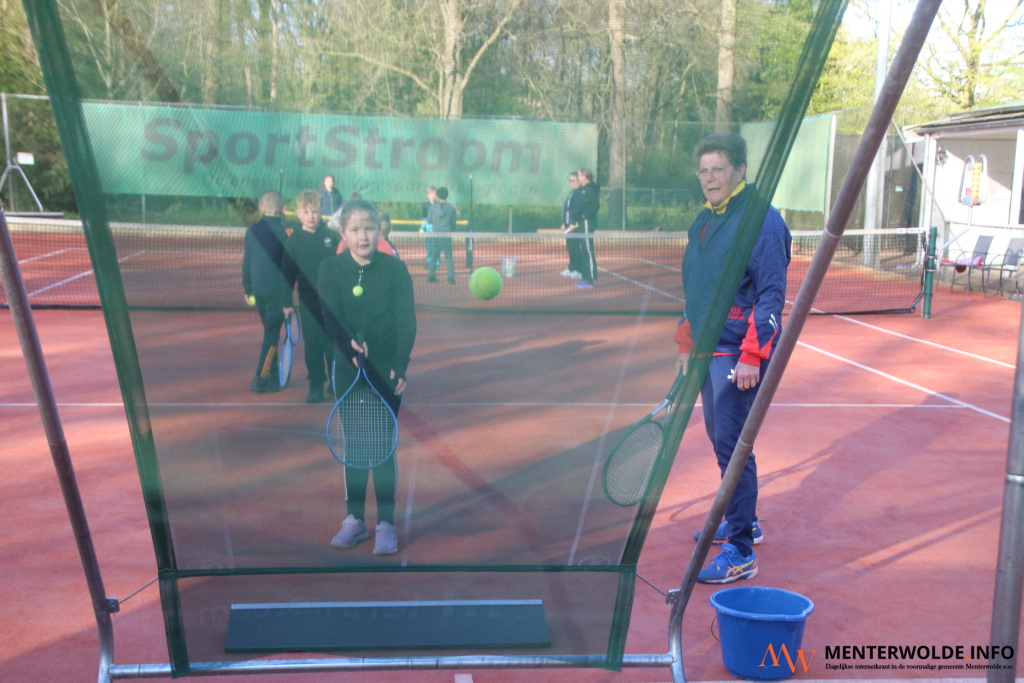 Basisscholieren maken kennis met tennis bij Tennisclub Muntendam