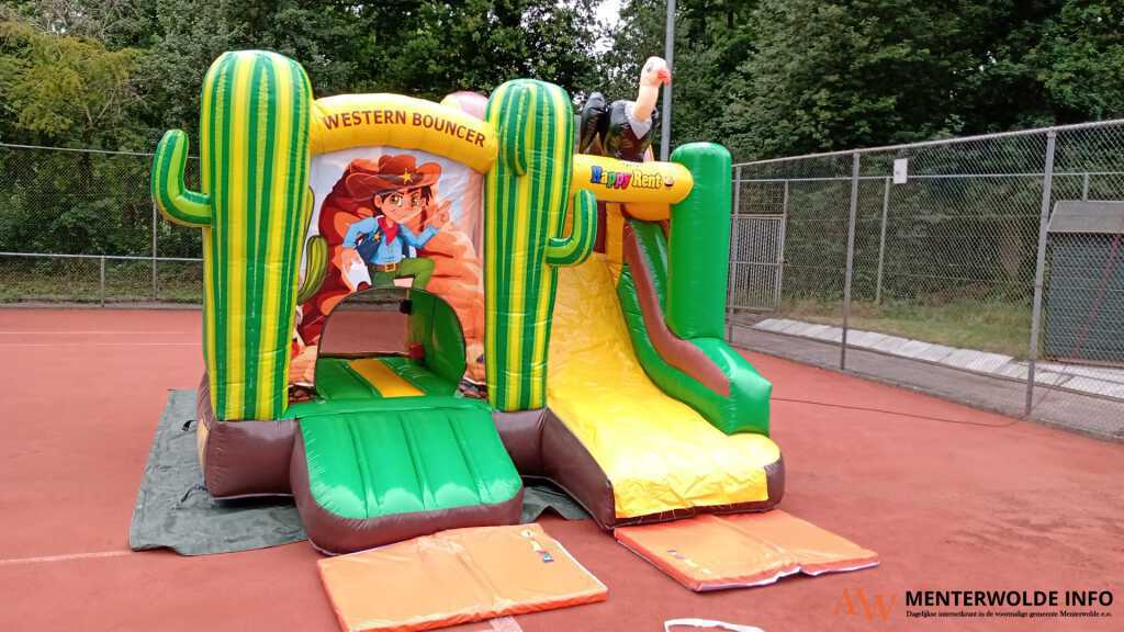 Tennis Club Muntendam (kortweg TCM) viert dit jaar het 50-jarig bestaan. In dat kader werd gistermiddag voor de jeugdleden (en hun kameraadjes) een gezellige middag georganiseerd op het tennispark. Ze werkten een carrousel af met spelletjes. Ook konden ze ravotten op het springkussen. Wie jarig is trakteert: de jongste leden kregen drinken, poffertjes en een lekker ijsje.