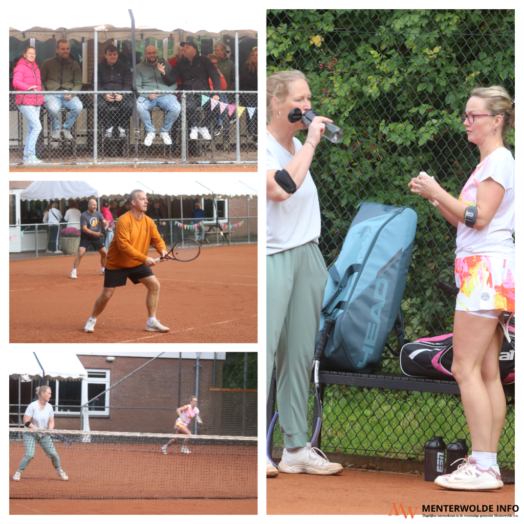 Het tennistoernooi TIOLO Open 2025 in Meeden is vandaag van start gegaan met 11 partijen. Een van de partijen was het TIOLO-onderonsje in de damesdubbel 6: Tanja Bessembinders/Michella Mensinga (foto boven) - Margreet van der Laan/Wendy Dieterman (foto onder): 7-5, 4-6 en 11-9. Er hebben zich 137 spelers (131 inschrijvingen, vorig jaar 103 tennissers) aangemeld.