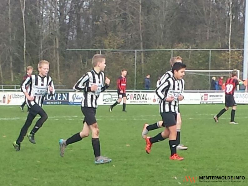 Mark Slim maakte er vandaag 4. Noah Schurink trof tweemaal doel. Mathijs Dontje maakte de zevenklapper compleet. Loes Edzes is het enige meisje in het team, maar ze staat wel degelijk haar mannetje in het veld.