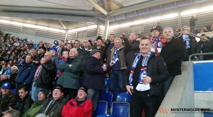 Een bus met 50 voetballiefhebbers uit Meeden was gisteren aanwezig bij de Bundesligawedstrijd Schalke 04 - Werder Bremen. De Veltins-Arena was met 61.973 toeschouwers uitverkocht. De Meedenaren zagen een matige wedstrijd die in 1-1 eindigde. "Zo'n reis is voor herhaling vatbaar", zegt Koos Beishuizen. Met Erwin Bettenbroek en Richard Kor organisator van deze dagtrip.