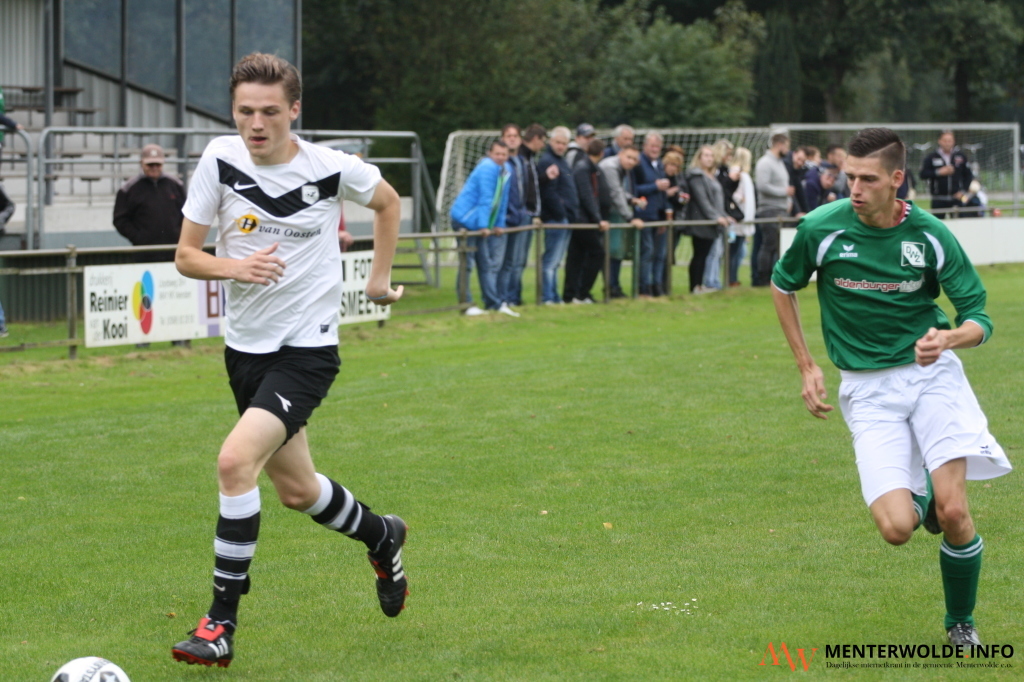Meeden had vanmiddag in Zuidwending geen kind aan DWZ en produceerde een heuse zevenklapper: 1-7 (rust 0-3). Door deze overwinning staat Meeden, met 7 punten uit 5 duels, op plaats 6 in 5F. Meeden zat al na 10 minuten op rozen door doelpunten van middenvelder Martijn Niemeijer (2. bal snoeihard in de kruising) en aanvaller Stefan Oosterwijk (10. profiteert van chaos in DWZ-defensie).