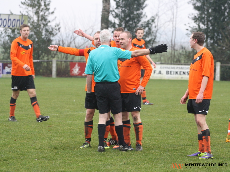 Ruben Haarlemmer stuurde Rik van Dijk na 10 minuten de diepte in. Van Dijk kwam daardoor oog in oog te staan met Boys-doelman Robbert Zuur. De aanvaller schoof de bal beheerst tussen de palen: 0-1 (bovenste foto). De vreugde leek van korte duur. Binnen 200 tellen maakte Martin Schreuder de gelijkmaker. Althans, dat dacht iedereen van de thuisclub. Assistent-scheidsrechter Elzo Boog vlagde voor buitenspel. Krol wenste aanvankelijk niet naar zijn assistent te lopen. Hij wees gedecideerd naar de middenstip. Dit tot woede van de spelers én begeleiding van Meeden. Waarom de arbiter toch overstag ging en de treffer annuleerde, was een raadsel (foto boven).