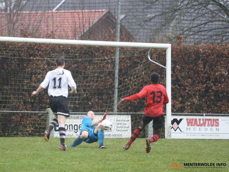 Na de 1-0 zege van vorige week bij Pekelder Boys hadden spelers en begeleiding van Meeden er alle vertrouwen in dat ook deze wedstrijd gewonnen zou worden. Scheidsrechter Koops uit Siddeburen leek roet in het eten te gooien. De arbiter wilde het veld afkeuren. "We hebben gezegd dat hij de wedstrijd moest laten beginnen. Zou het echt niet kunnen, dan kon hij de wedstrijd altijd nog staken", aldus De Vrieze.