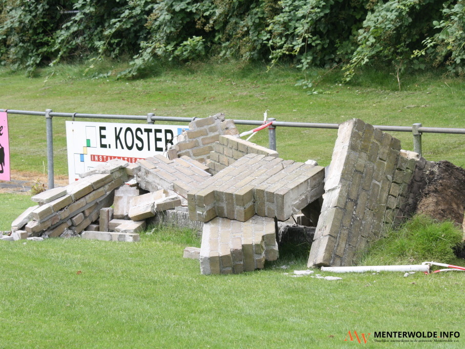 De 2 dug-outs langs het hoofdveld van v.v. Muntendam zijn vanmorgen afgebroken. De voetbalclub wil hiervoor in de plaats 2 aluminium dug-outs van 4 meter breed plaatsen. De kosten worden geschat op 5.000 euro. De stenen dug-outs op veld 2 moeten ook worden vervangen, zegt bestuurslid Roelie Slor. De gemeente Menterwolde gaat v.v. Muntendam financieel niet steunen.