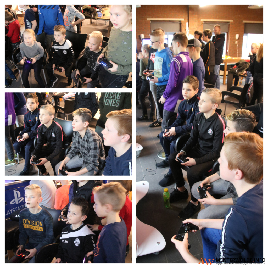 Jeugd v.v. Muntendam vermaakt zich met computervoetbal