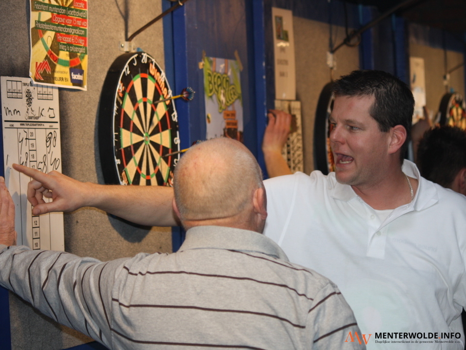 Jan Plaatje (51) en Eppie Scholtens (43) zijn morgen, tijdens het jaarlijkse koppeldartstoernooi van v.v. Muntendam, de te kloppen darters. De Muntendammers zijn immers de titelverdedigers. Sterker nog, ze hebben dit toernooi, dat vanaf 12 uur plaatsvindt in de kantine, al driemaal op rij gewonnen. Het dartstoernooi van de voetbalclub is razend populair. "Voor de kerstdagen zaten we al vol."