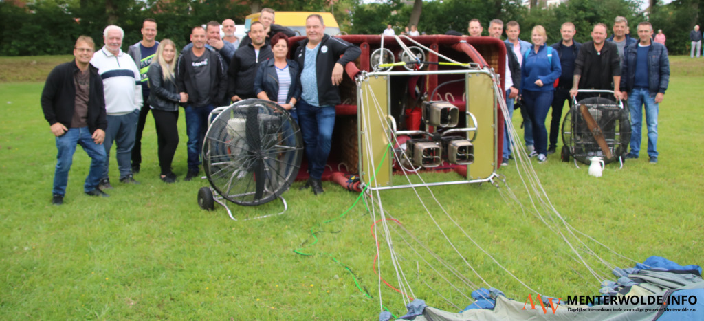 Als je voetbalelftal na jaren stopt, wil je ook op een gedenkwaardige manier afscheid van elkaar nemen. Dat moeten de spelers van Muntendam 4 ook hebben gedacht. Dus maakten ze, met enkele gasten en familieleden, vanavond vanaf het ijsbaanterrein aan de Zuiderstraat een ballonvaart. De 2 ballonnen bleven een uur in de lucht en landden in Gasselterboerveenschemond.