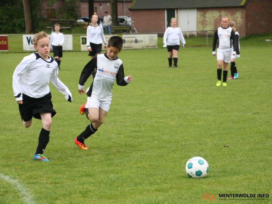 v.v. Muntendam houdt vandaag een groot voetbaltoernooi voor de E- en F-pupillen. Liefst 33 teams - 15 E en 18 F - komen in actie. Medeorganisator Mariska Nieboer is blij dat alle clubs, ondanks het slechte weer, zijn gekomen. "Ze kwamen wel allemaal laat aan druppelen", zegt Nieboer. Het toernooi is meer dan voetbal. Een springkussen en het laten schminken van je gezicht scoort vandaag ook.