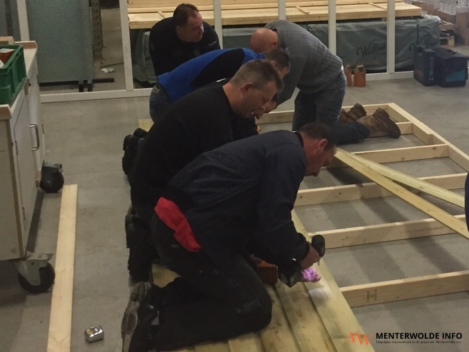 Een vriendenelftal. Zo kan het 4e elftal van Muntendam best genoemd worden. Bijna alle spelers verzamelden zich vanochtend niet op het veld, maar in de timmerwerkplaats van Bouwbedrijf Gervas. Met z'n allen wordt daar een nieuw tuinhuisje gebouwd voor ploeggenoot Alfred Bosma uit Veendam. Zijn tuinhuisje, op volkstuinencomplex Borgerswold in Veendam, werd 5 februari door brand verwoest.