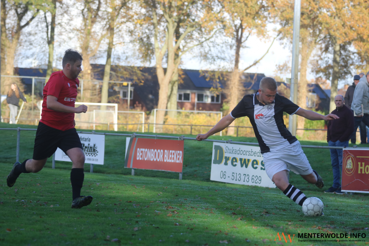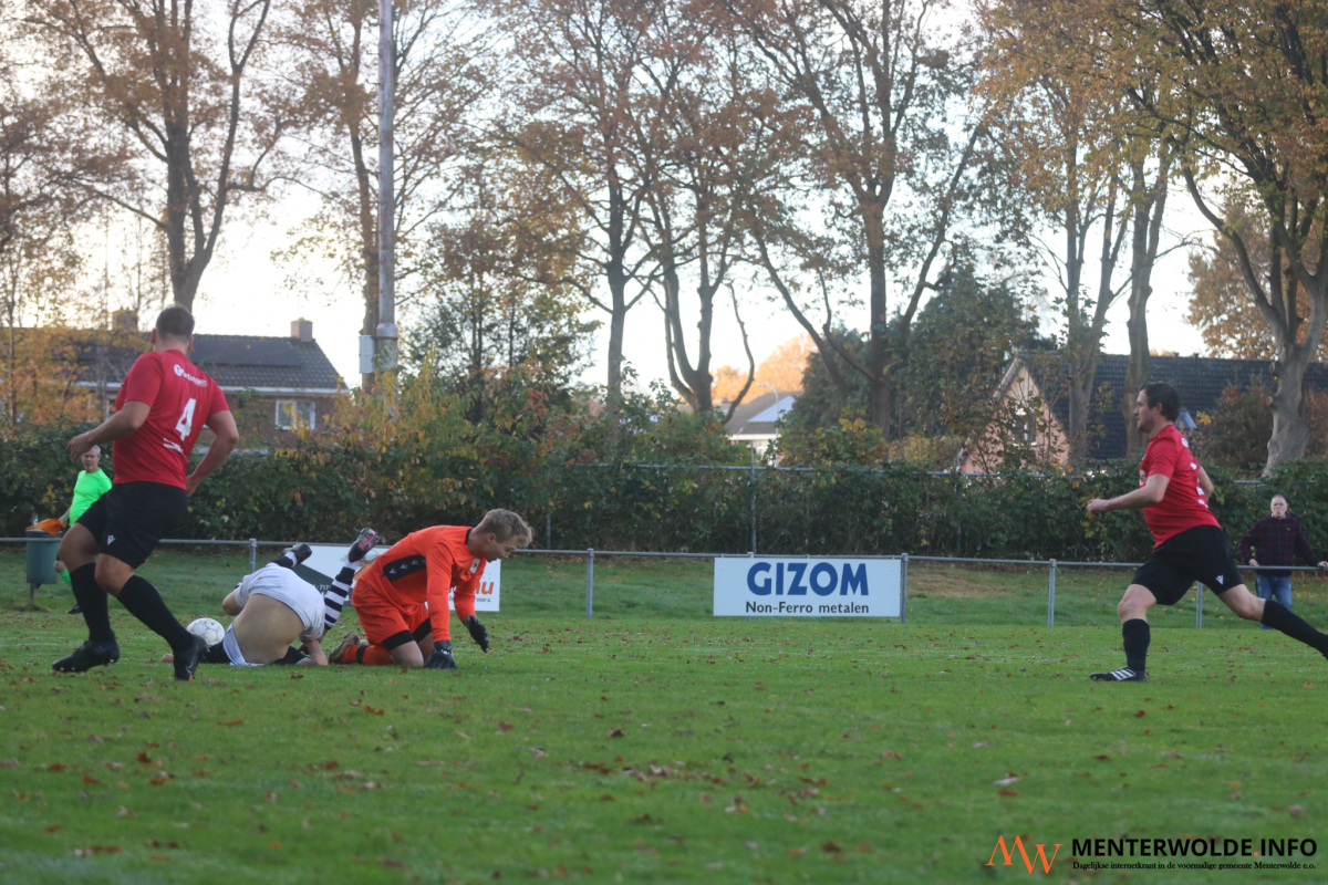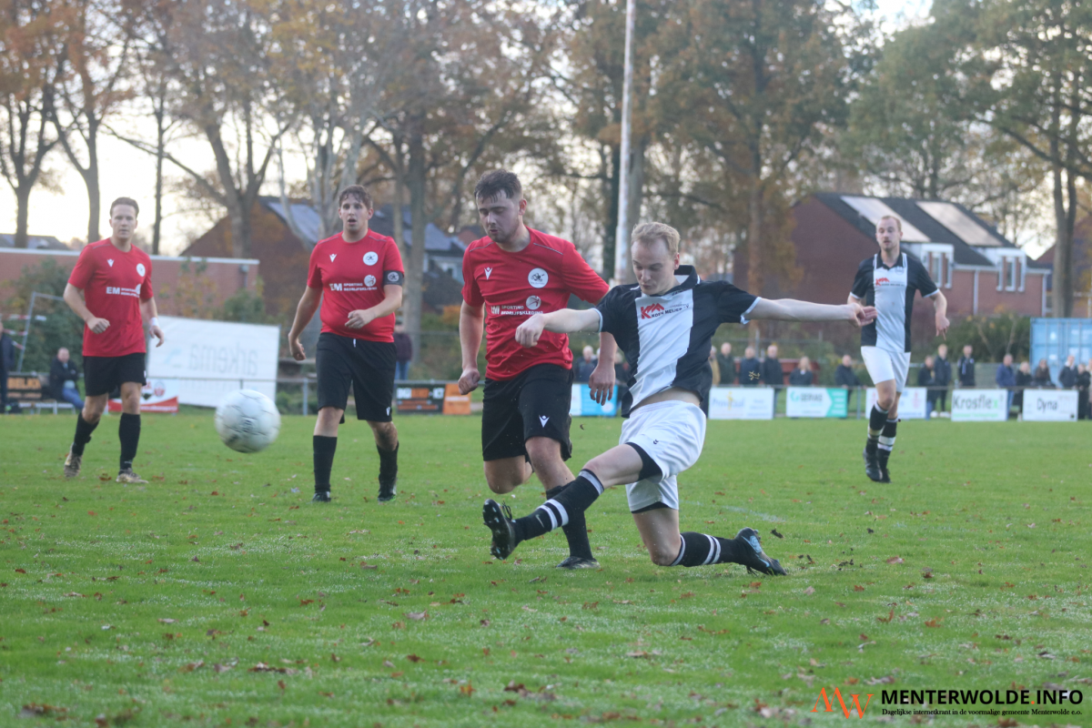 Muntendam wilde meer, maar daar dacht Arfin Wessels anders over. Hij schoof de bal beheerst in de verre hoek: 2-3. In de laatste 20 minuten probeerde Muntendam voor de derde keer op gelijke hoogte te komen. Kansen leverde dat niet op.
