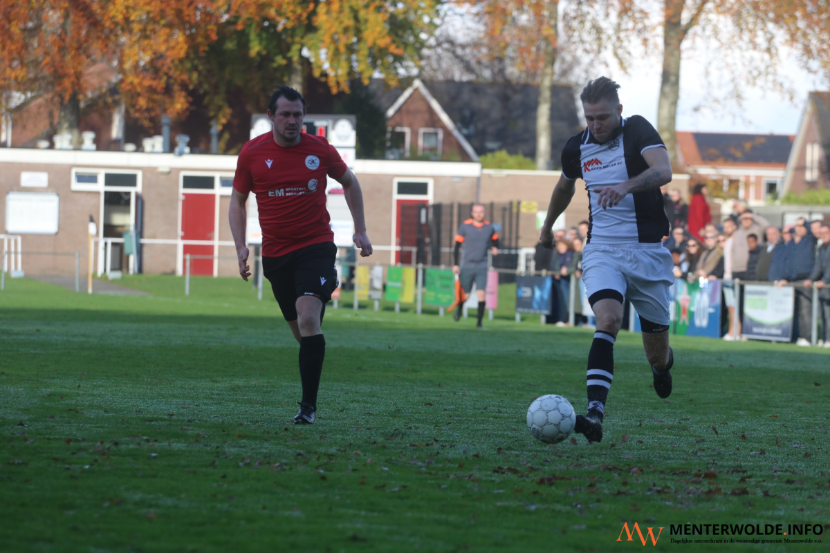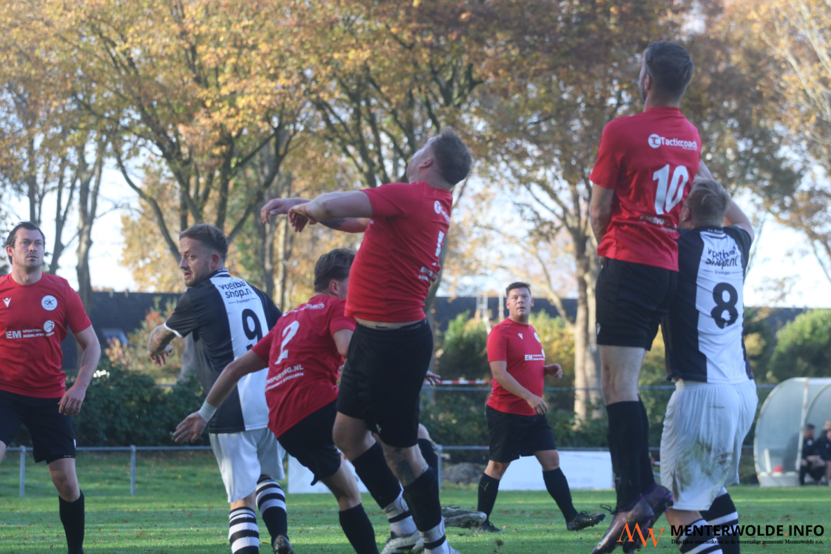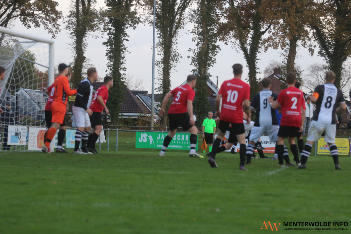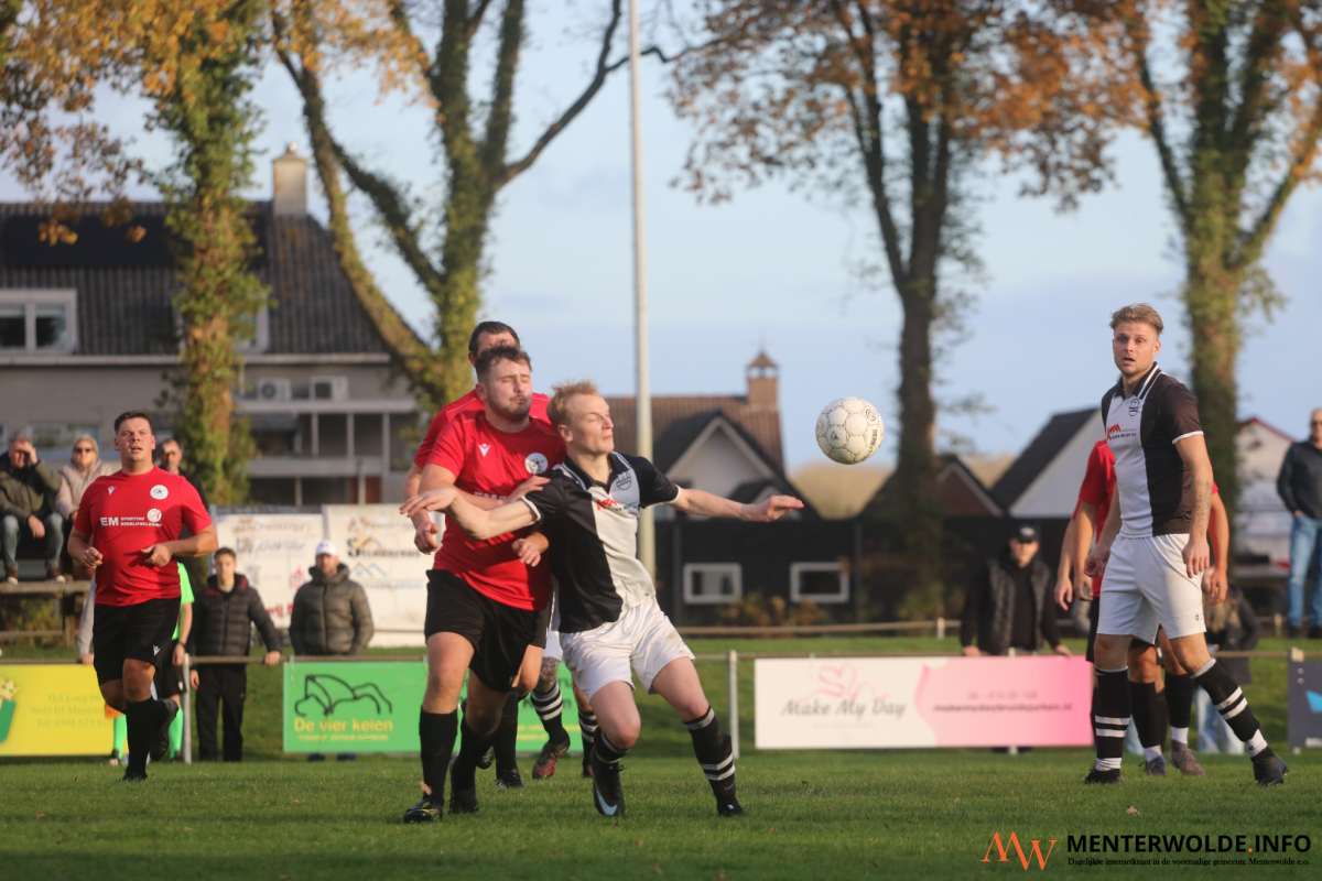 Muntendam wilde meer, maar daar dacht Arfin Wessels anders over. Hij schoof de bal beheerst in de verre hoek: 2-3. In de laatste 20 minuten probeerde Muntendam voor de derde keer op gelijke hoogte te komen. Kansen leverde dat niet op.