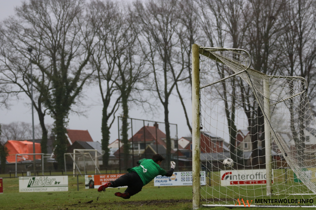 De clubtopscorer en koploper in de strijd om de PLUS Muntendam Topscorersbokaal - met 15 goals - opende al na 8 minuten de score. Hij schoot de bal in tweede instantie achter doelman Bas Boonman. Kort hiervoor werd de bal via een kopbal van Hut van de doellijn gehaald.