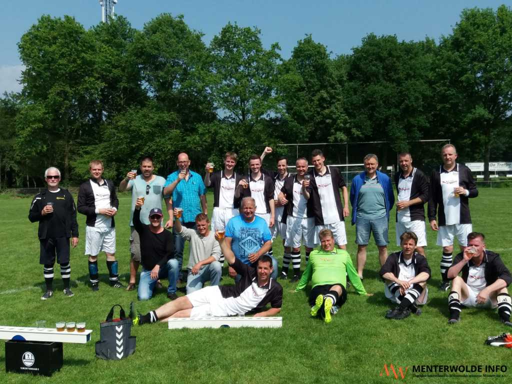 Muntendam nam vanmiddag afscheid van Pascal Venema (naar Veendam 1894, zaterdag), verzorger André Sonneveld en assistent-scheidsrechter Henk Heidema. De 46-jarige Heidema houdt het na een kwart eeuw, met enkele tussenpozen en een uitstapje naar Muntendam 2, voor gezien. "Ik heb fantastische jaren gehad. Maar ik heb rugklachten en moest kiezen: of fluiten op zaterdag of zondag vlaggen."