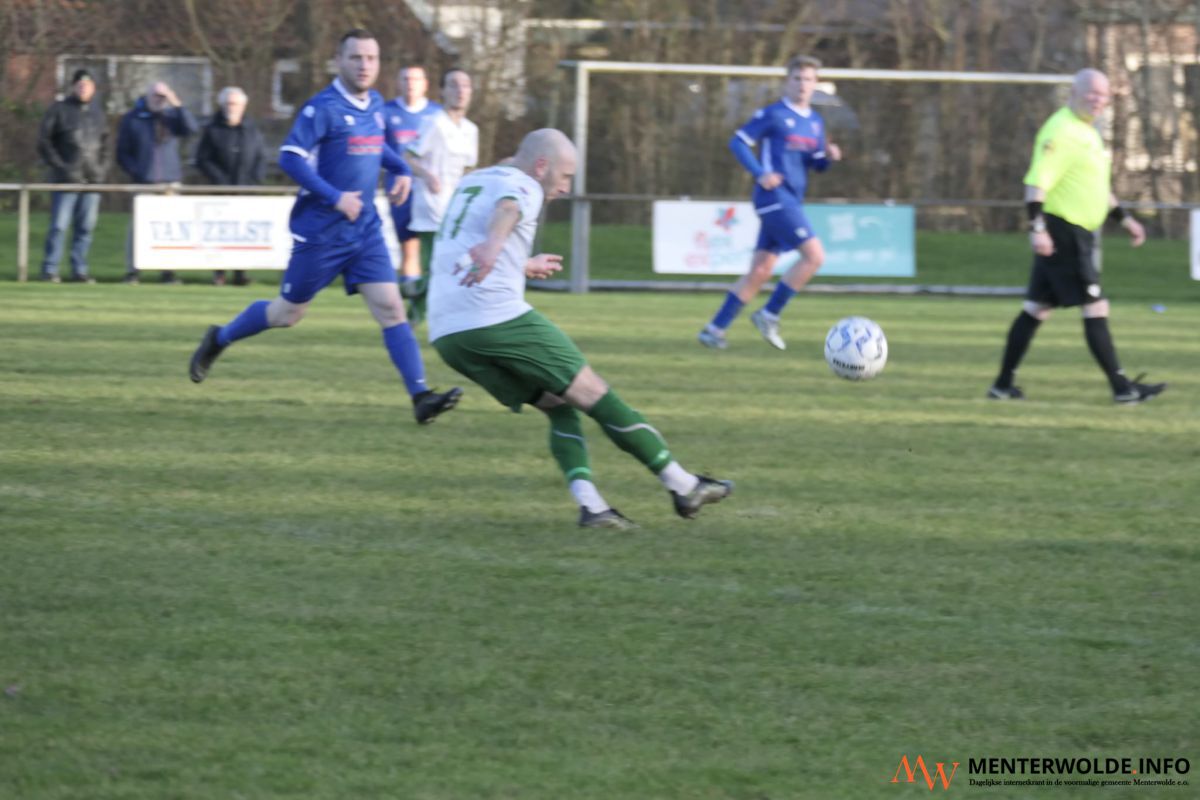 "Voordat wij op 0-1 kwamen kreeg Niewolda een hele grote kans. Ze kwamen met 2 man op onze doelman Henk Meuken af maar speelden dat niet goed uit. Henk verving Richard Zuidema."