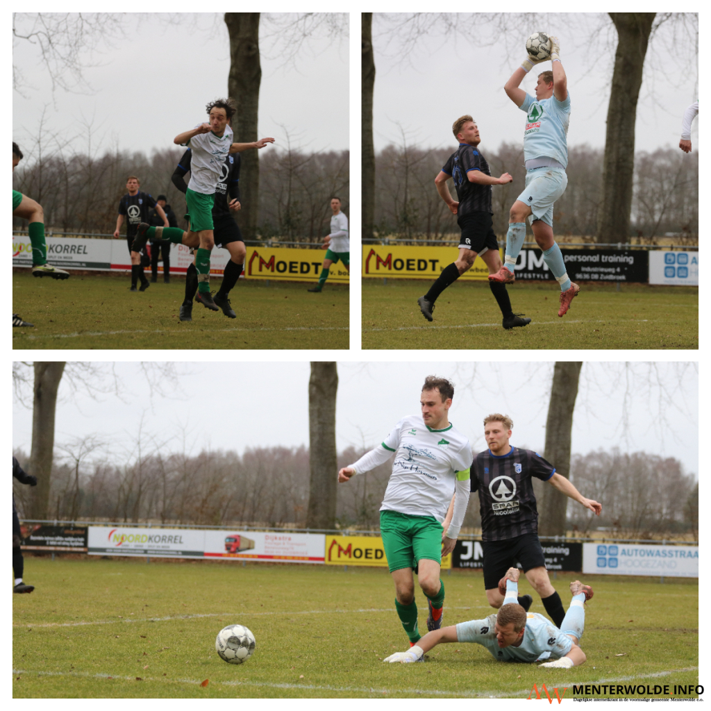 De koploper (26 uit 12, SC Scheemda 13-26, Pekela 11-24 en SV Mussel 12-24) was in de slotminuten zeer dicht bij de overwinning. Invaller Jip Molmans kon van dichtbij de bal tegen de touwen werken. Zuidema redde echter op katachtige wijze.