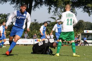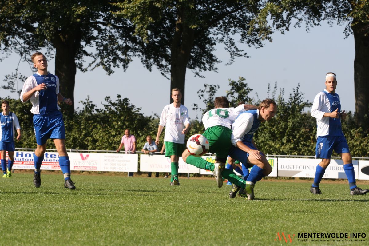 Valthermond, de ploeg van trainer Harris Huizingh, komt als een komeet uit de startblokken en leidt na 16 minuten al met 0-2 door doelpunten van Tom Meijers (kopt in de 5e minuut ongehinderd raak uit een hoekschop) en de 36-jarige Edwin Drenth (16., schuiver verre hoek). Tussendoor verzuimt Jeroen Huizinga te profiteren van een misverstand tussen Valthermond-doelman Erwin Timmer en zijn ploeggenoot Lars Baas. Huizinga legt de bal breed - waar niemand meeloopt - in plaats van zelf uit te halen.